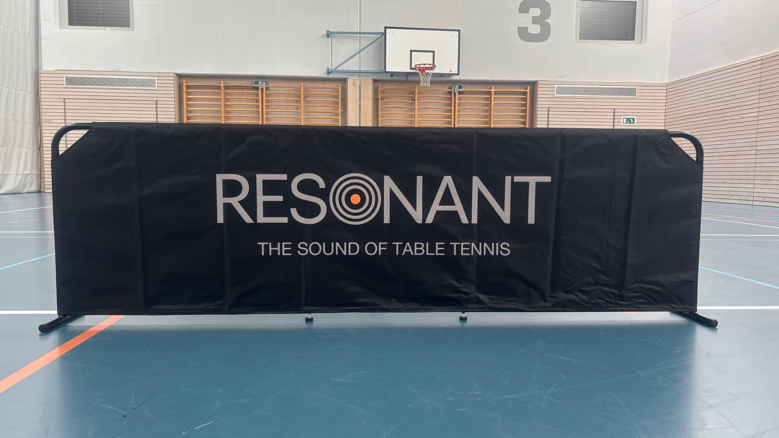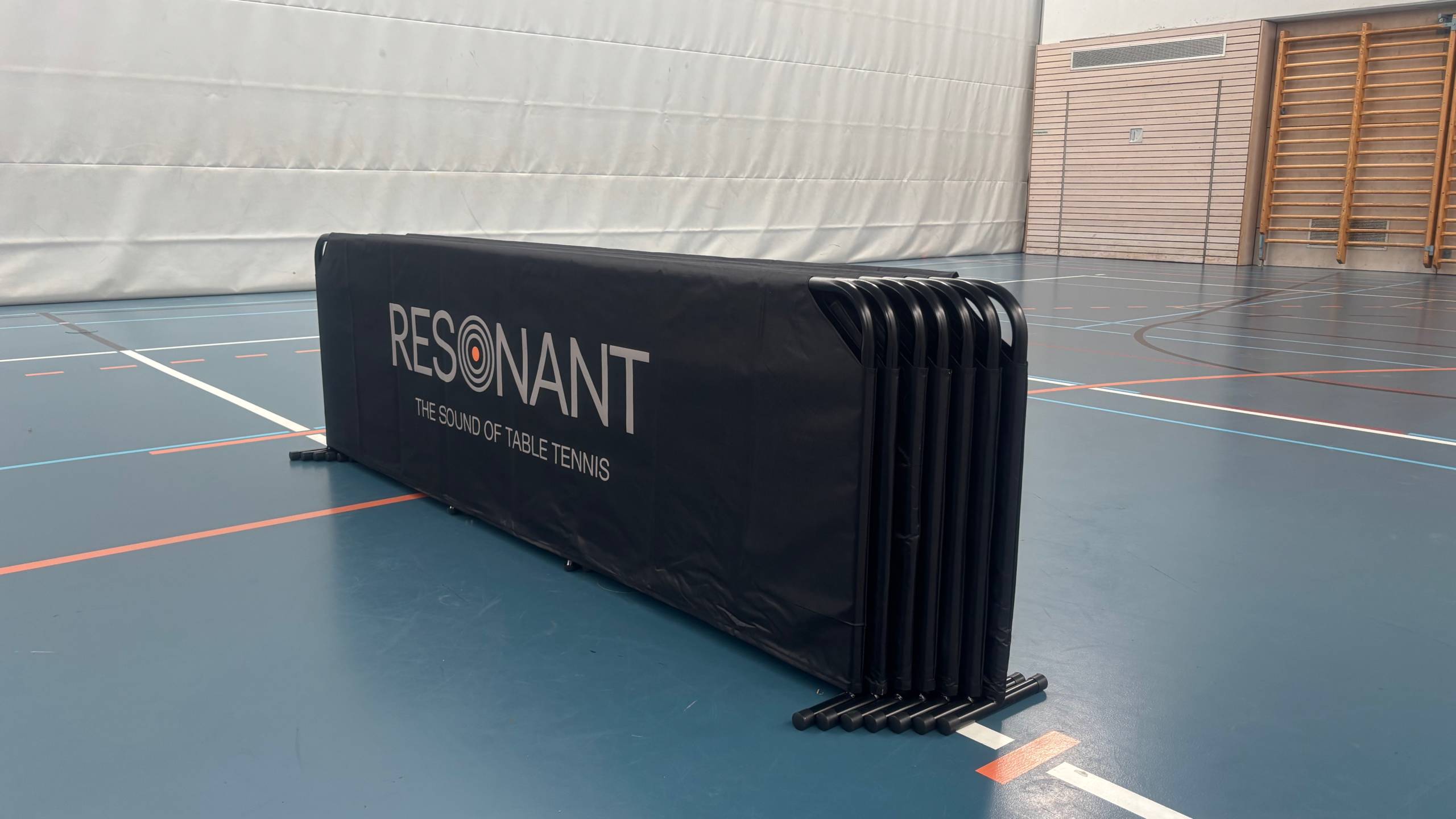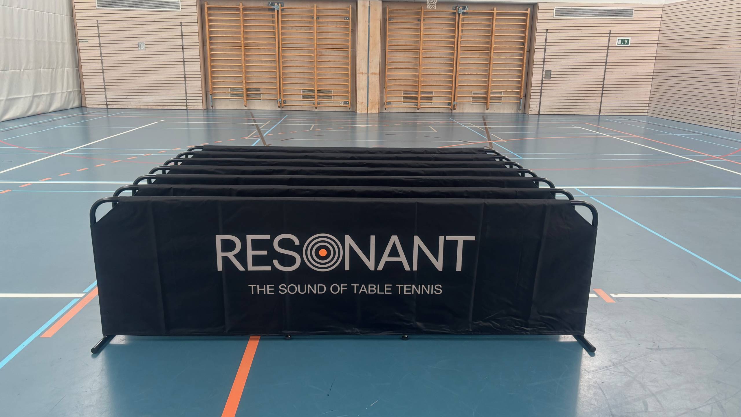 Die Spielfeldumrandungen sind schwarz und tragen das RESONANT-Logo nur auf einer Seite. So kann man sie abwechselnd positionieren, mit Logo nach außen oder neutral. Auf Wunsch kann auf der anderen Seite auch das Vereinslogo oder das Logo eines Sponsors angebracht werden.