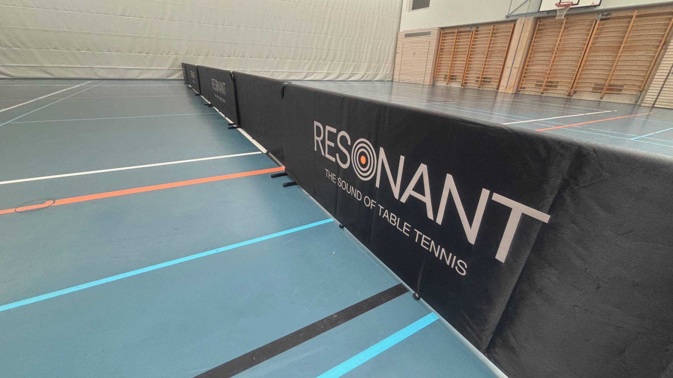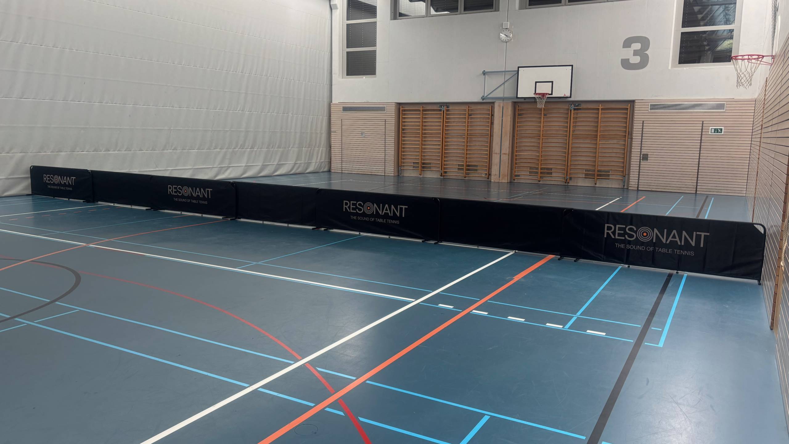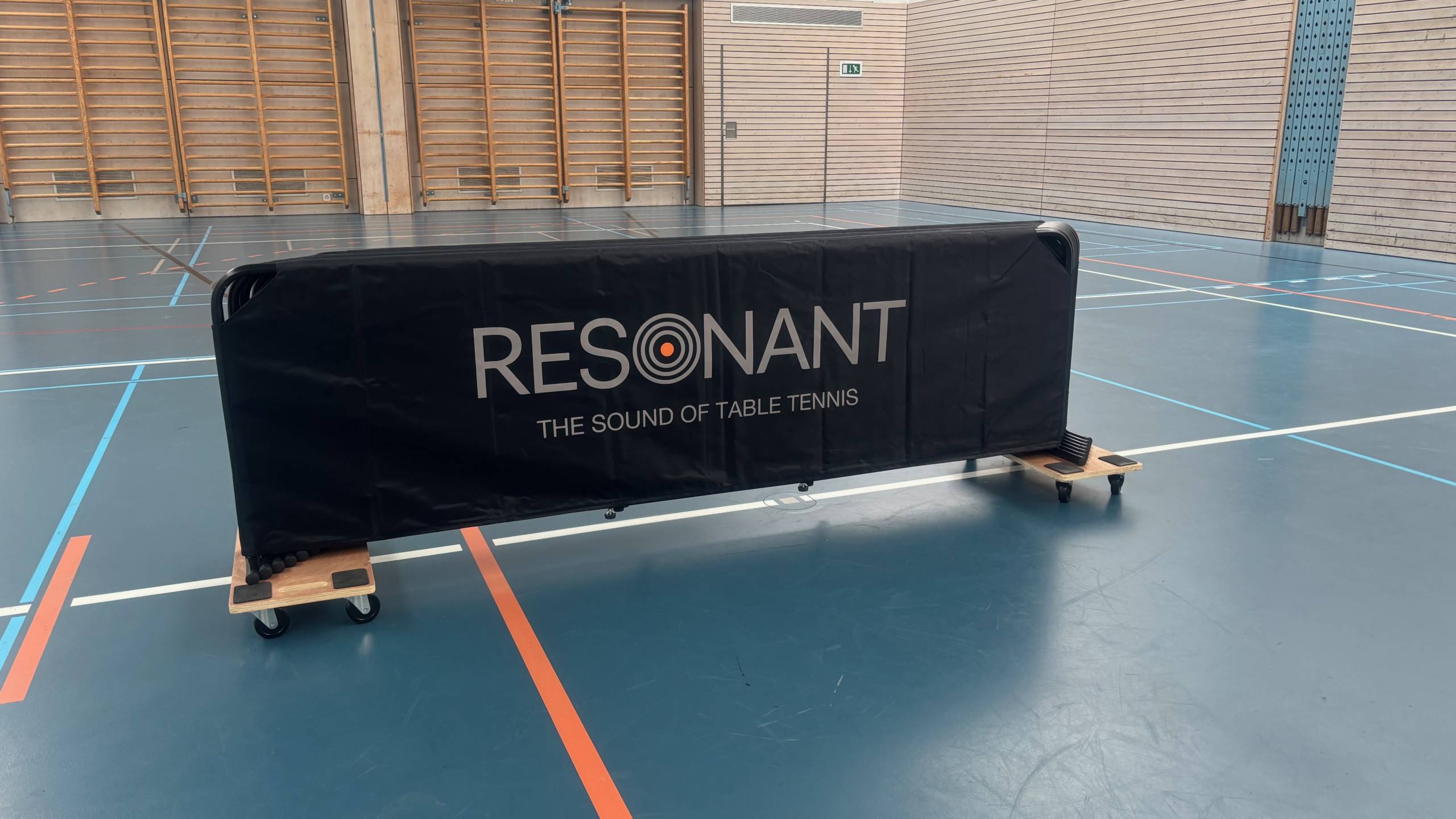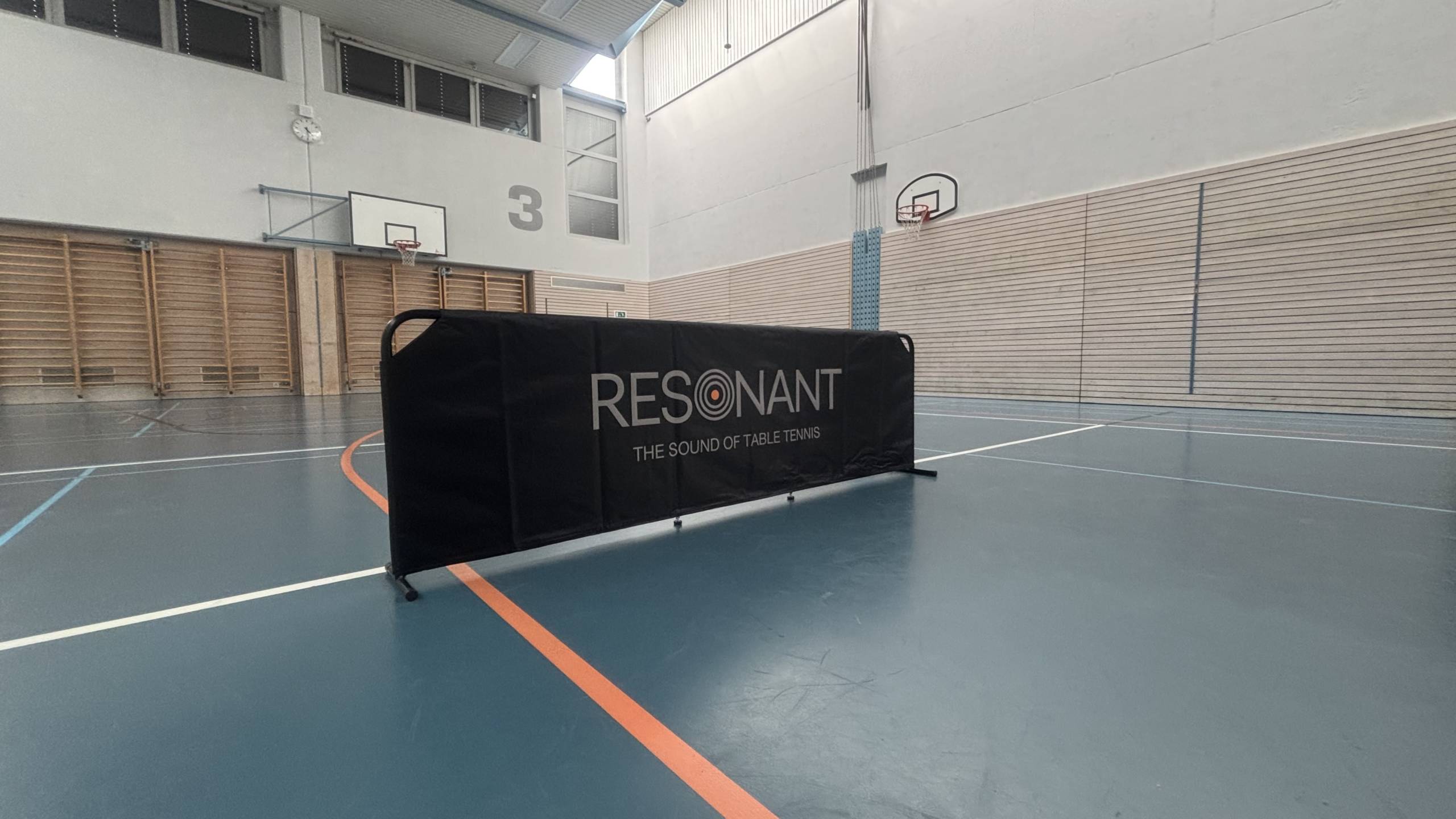Die Spielfeldumrandungen sind schwarz und tragen das RESONANT-Logo nur auf einer Seite. So kann man sie abwechselnd positionieren, mit Logo nach außen oder neutral. Auf Wunsch kann auf der anderen Seite auch das Vereinslogo oder das Logo eines Sponsors angebracht werden.